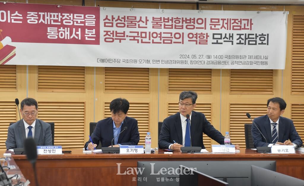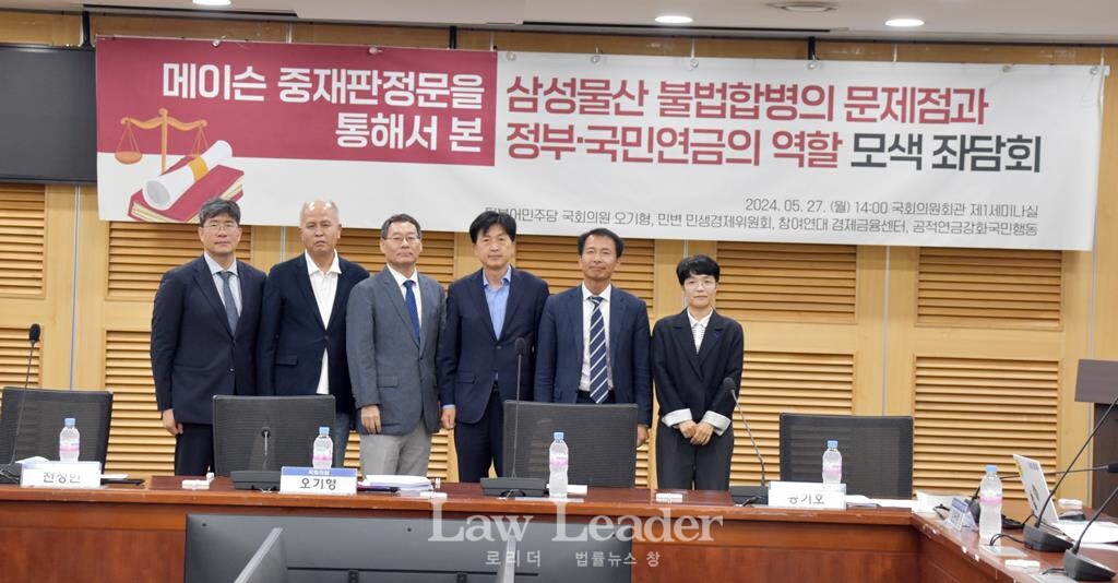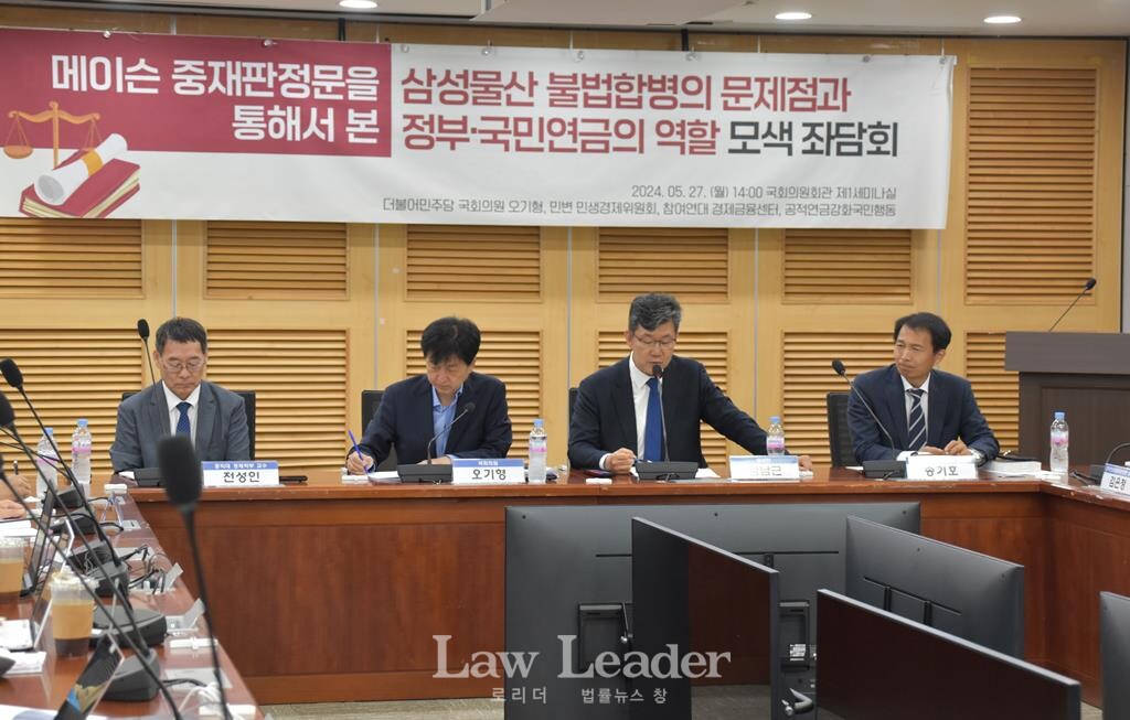 더불어민주당 오기형 국회의원과 김남근 당선인, 민주사회를 위한 변호사모임(민변) 민생경제위원회, 참여연대 경제금융센터, 공적연금강화국민행동은 5월 27일 국회의원회관 제1세미나실에서 “메이슨 중재판정문을 통해서 본, 삼성물산 불법합병의 문제점과 정부ㆍ국민연금의 역할 모색 좌담회”를 개최했다.