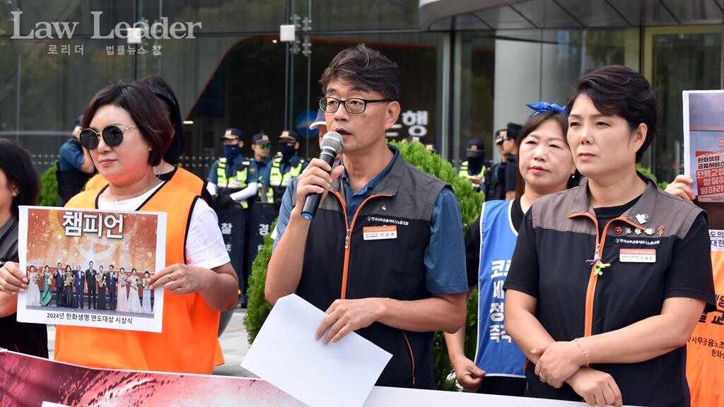 [로리더] 이승현 전국사무금융서비스노동조합(사무금융노조) 일반사무업종본부장은 27일 “(한화생명이) 정당한 노동조합 활동을 신뢰 훼손과 업무방해, 명예훼손으로 바라보고 있다는 사실 자체가 매우 심각한 문제”라고 지적했다.