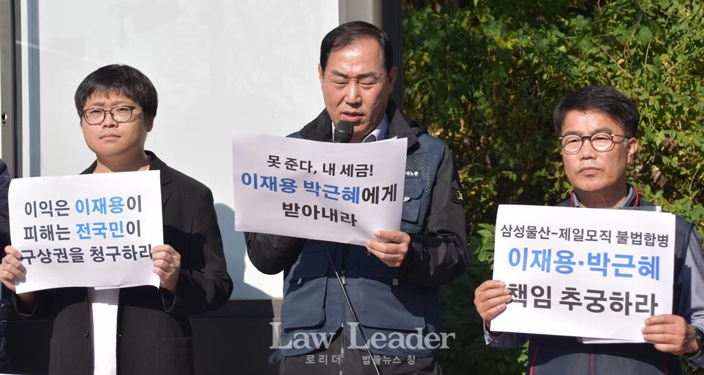 기자회견 주최 측은 “삼성물산과 제일모직의 합병은 이재용 회장의 경영권 승계를 위해 정경유착과 국정농단으로 이뤄진 것”이라며 “이 합병은 삼성물산에게 불리한 합병이었지만, 당시 박근혜 전 대통령이 이재용 부회장으로부터 뇌물을 받고, 문형표 보건복지부 장관과 홍완선 국민연금공단 기금운용본부장 등을 통해 삼성물산의 최대 주주였던 국민연금공단이 합병에 찬성하도록 지시했다”고 설명한다.