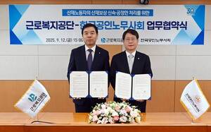 [로리더] 한국공인노무사회(회장 박기현)는 12일 근로복지공단과 서울합동청사 5층 스마트룸에서 산업재해 근로자의 권익보호와 신속ㆍ공정한 보상업무 지원을 위한 업무협약을 체결했다.이번 협약은 산업재해로 인해 부상 또는 질병을 입은 근로자의 빠른 기능 회복과 생활 안정 도모라는 공동의 필요성에 공감해 마련됐다.양 기관은 상호 전문성과 자원을 연계해 산재(산업재해) 근로자에게 실질적인 지원을 제공하고, 산업재해보상보험 제도의 원활한 운영에 협력하기로 했다.주요 협력 분야는 ▲산재보험 사업의 원활한 운영지원 ▲산업재해 근로자의 권익보호 ▲