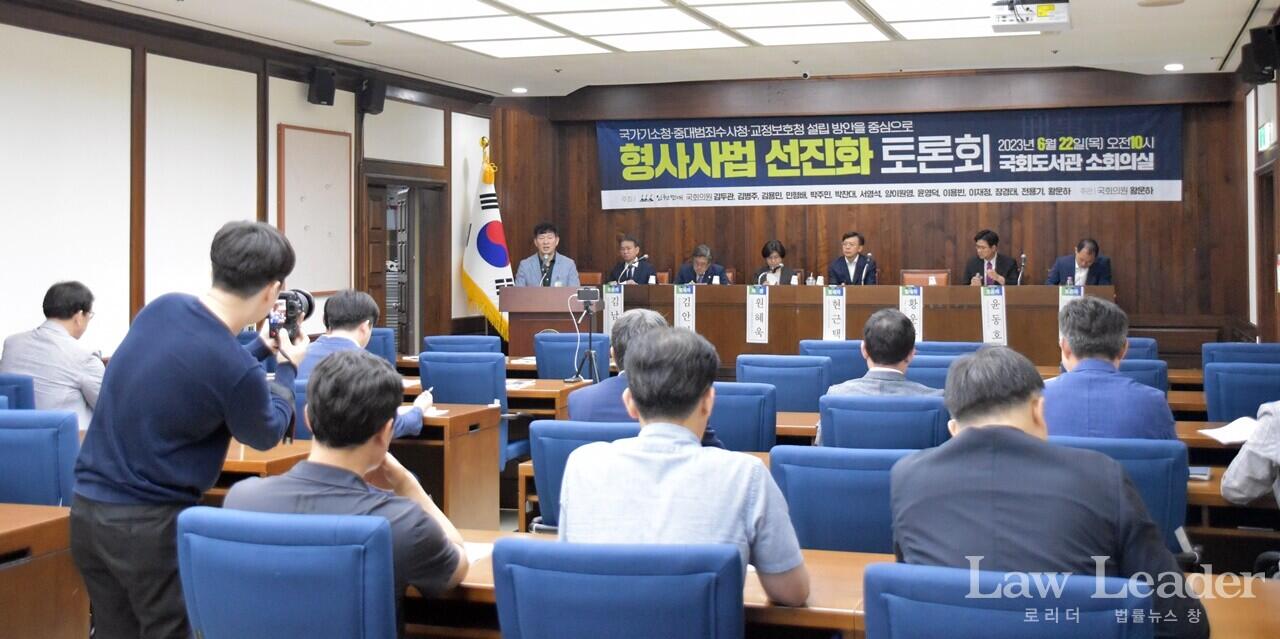 이날 오전 10시 국회도서관 소회의실에서 ‘국가기소청ㆍ중대범죄수사청ㆍ교정보호청 설립 방안을 중심으로 – 형사사법 선진화 토론회’가 개최됐다. 토론회는 인권연대, 더불어민주당 김두관, 김병주, 민형배, 박주민, 서영석, 양이원영, 윤영덕, 이용빈, 이재정, 장경태, 전용기, 황운하 의원이 주최했다.