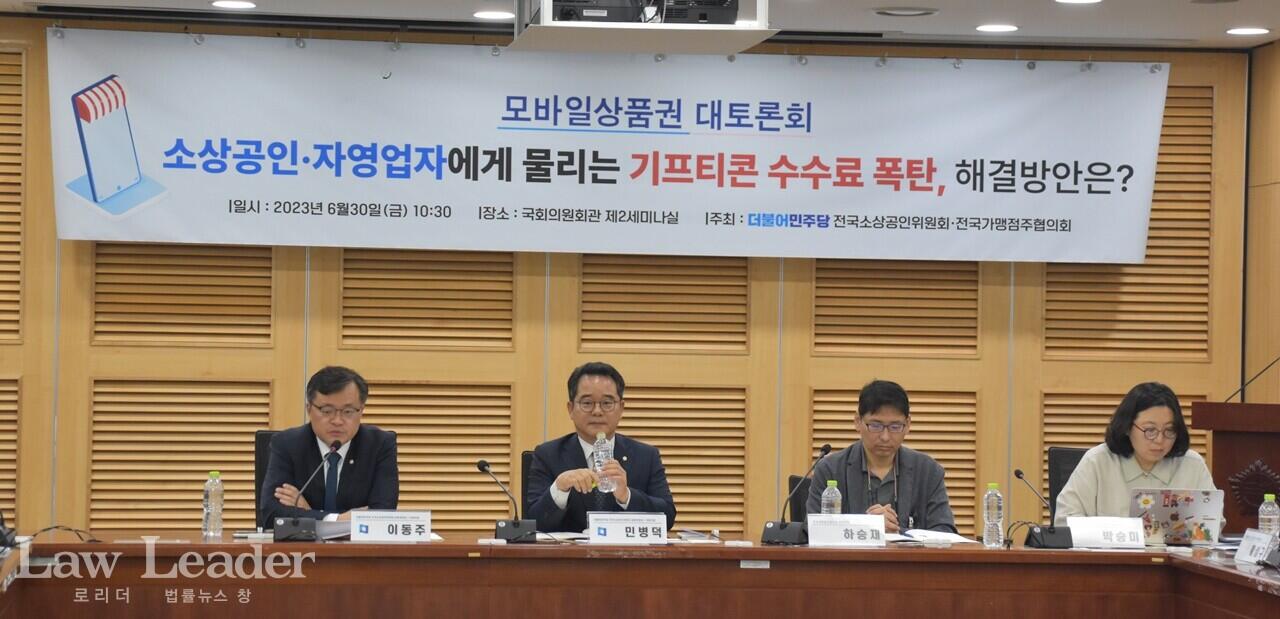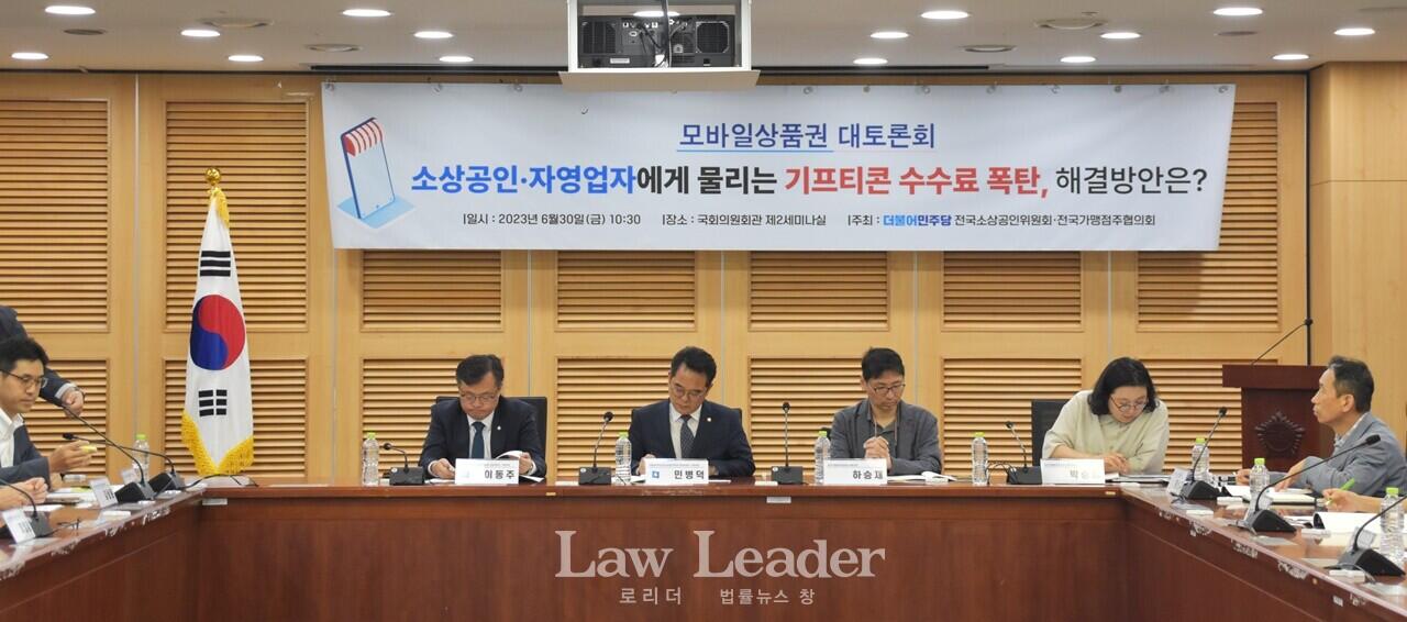 민주당 전국소상공인위원회(위원장 민병덕ㆍ이동주)와 전국가맹점주협의회는 지난 6월 30일 국회의원회관 제2세미나실에서 “소상공인ㆍ자영업자에게 물리는 기프티콘 수수료 폭탄, 해결방안은?” 주제로 모바일상품권 피해사례 대토론회를 개최했다.