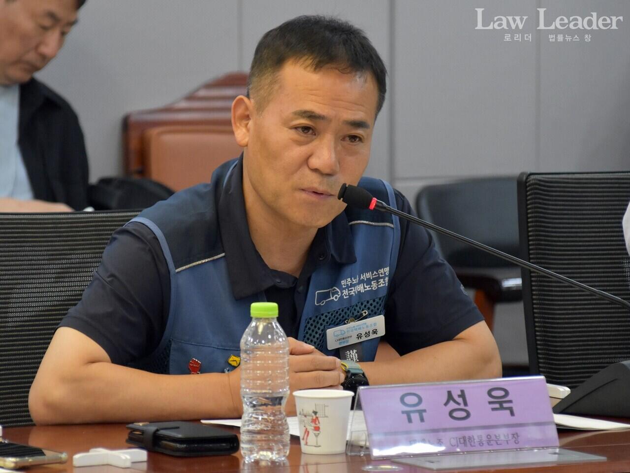 이 자리에서 증언자로 참석한 전국택배노동조합(택배노조) 유성욱 CJ대한통운본부장은 ‘택배현장의 진짜 사장은 누구인가? 택배산업의 원하청 문제’를 주제로 발언에 나섰다.