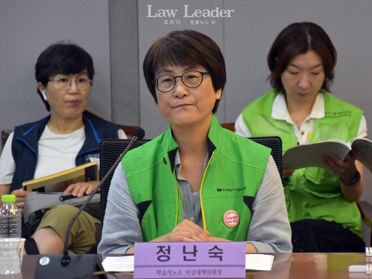 [로리더] 전국학습지산업노동조합 정난숙 비상대책위원장은 7월 20일 “헌법에 보장된 노동3권이 노조법으로 규제돼 법에 사각지대가 만들어 놓여있다”면서 “자본과 정권이 헌법을 배반한 노조법을 내세우며 노동자를 탄압하는 도구로 삼고 있다”고 목소리를 높였다.