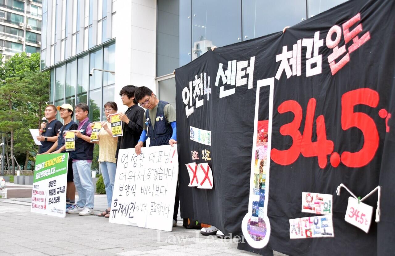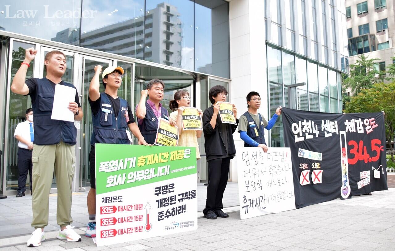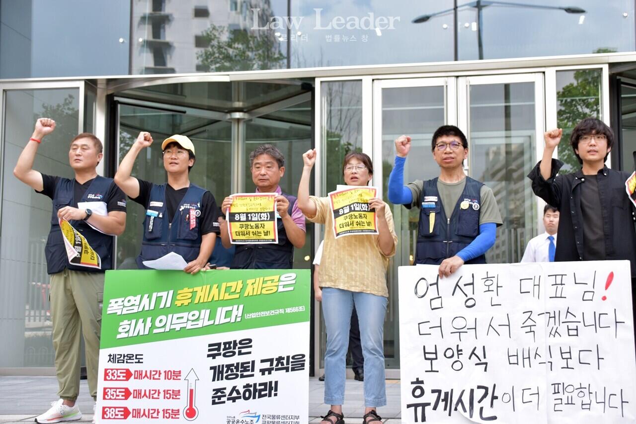 노조 측은 “쿠팡은 2022년 산업안전보건기준에 관한 규칙 제566조에 따른 휴게시간을 보장하지 않고 체감온도를 엉터리로 측정ㆍ계산하는 등 억지를 부린다”며 쿠팡에 “산업안전보건규칙대로 휴게시간을 보장하라”고 요구했다.