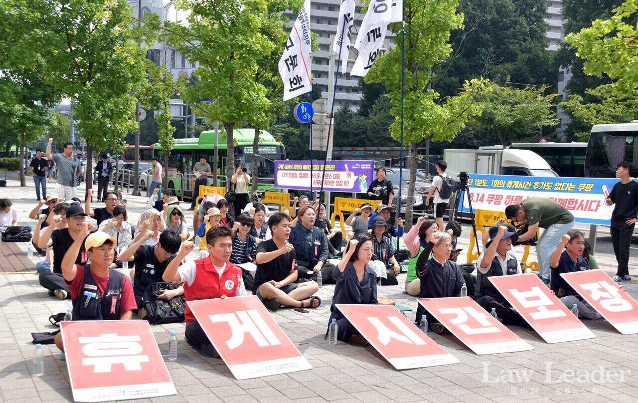 정성용 지회장은 “쿠팡은 6월 본교섭에서 분명히 ‘폭염 대책 잘 마련하고 있다’, ‘휴게시간 관련해서 준비하고 있다’고 분명히 얘기했다”며 “여름이 다 끝날 때까지 준비만 하는 것 같다”고 지적했다.