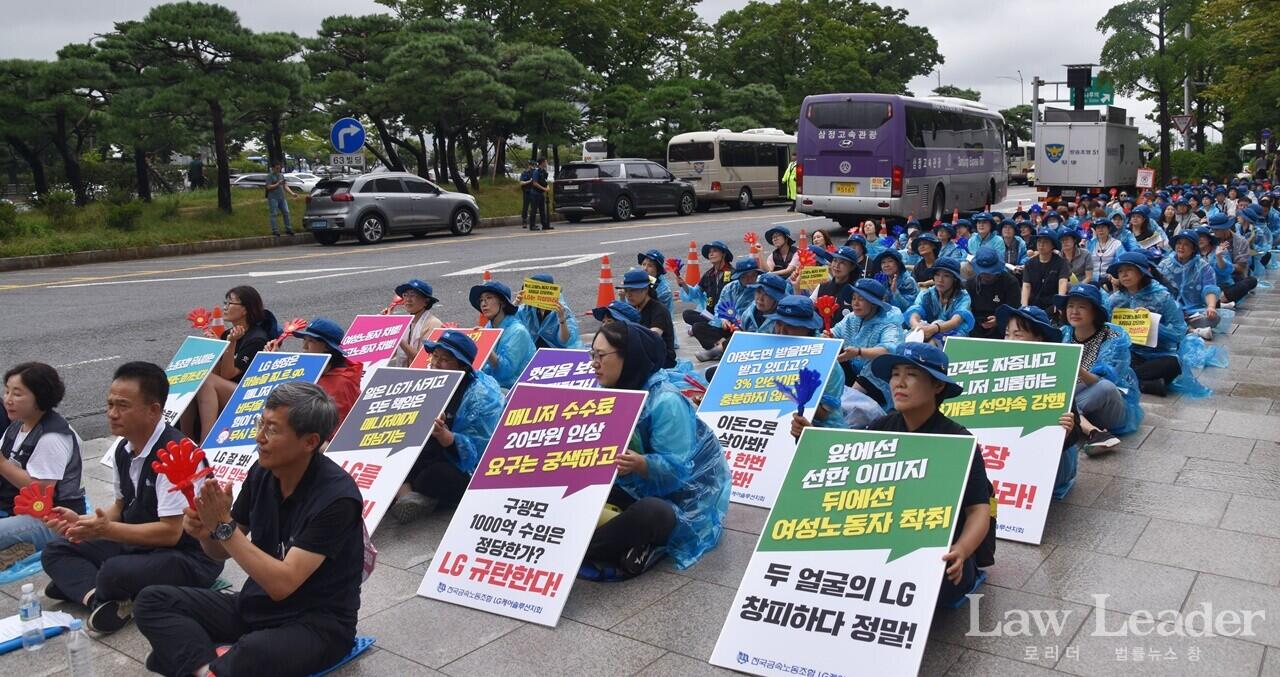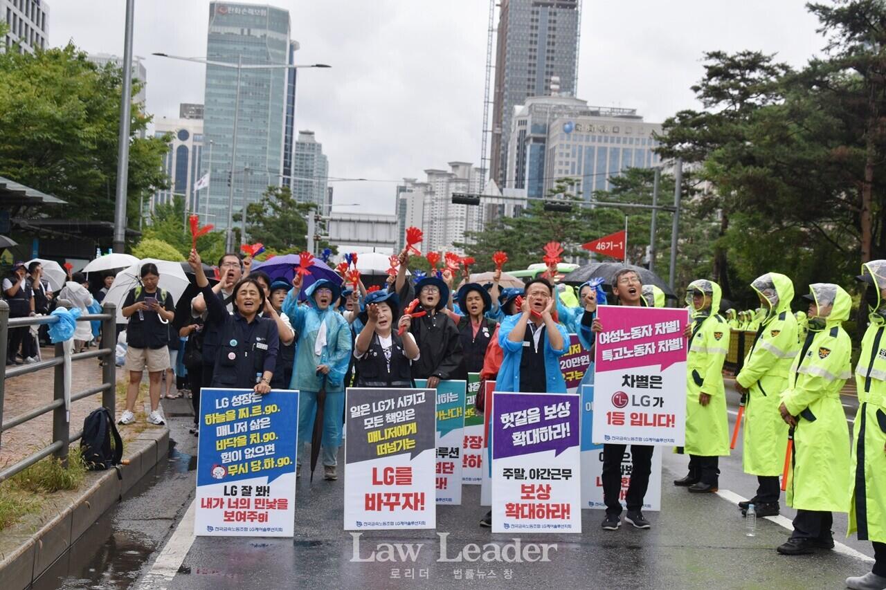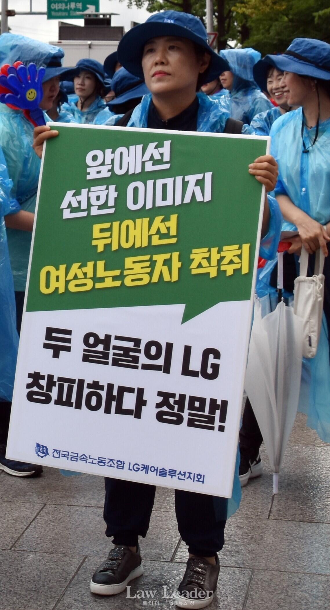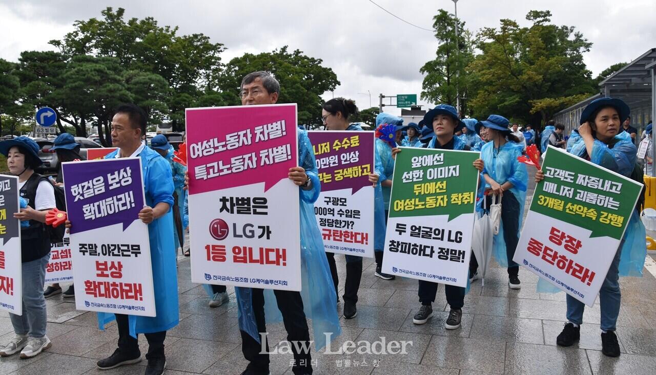집회를 주관한 전국금속노조 서울지부는 “LG케어솔루션지회는 2023 임금교섭에서 LG그룹의 금속노조 차별, 여성노동자 차별, 특수고용노동자 차별에 맞서 투쟁하고 있다”고 밝혔다.