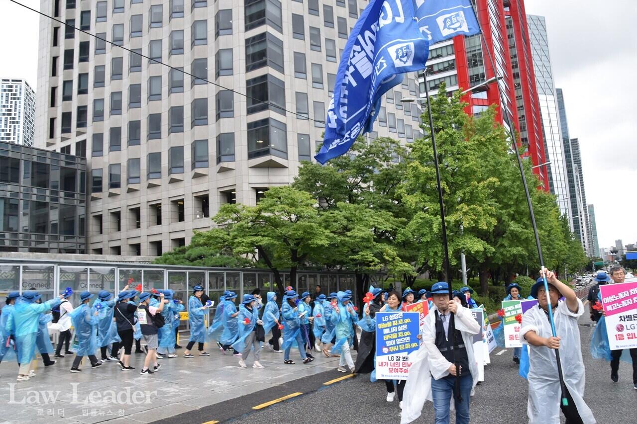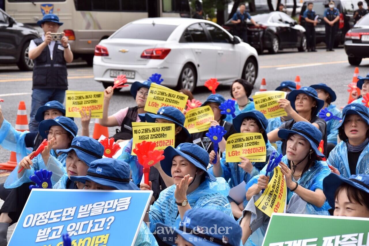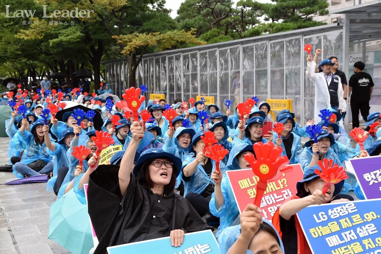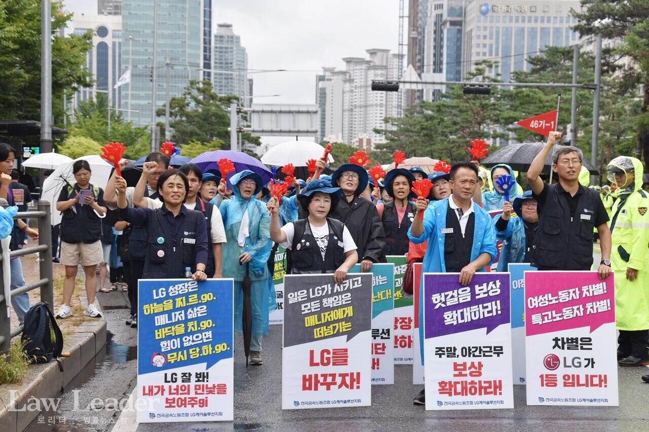 집회를 주관한 전국금속노조 서울지부는 “LG케어솔루션지회는 2023 임금교섭에서 LG그룹의 금속노조 차별, 여성노동자 차별, 특수고용노동자 차별에 맞서 투쟁하고 있다”고 밝혔다.