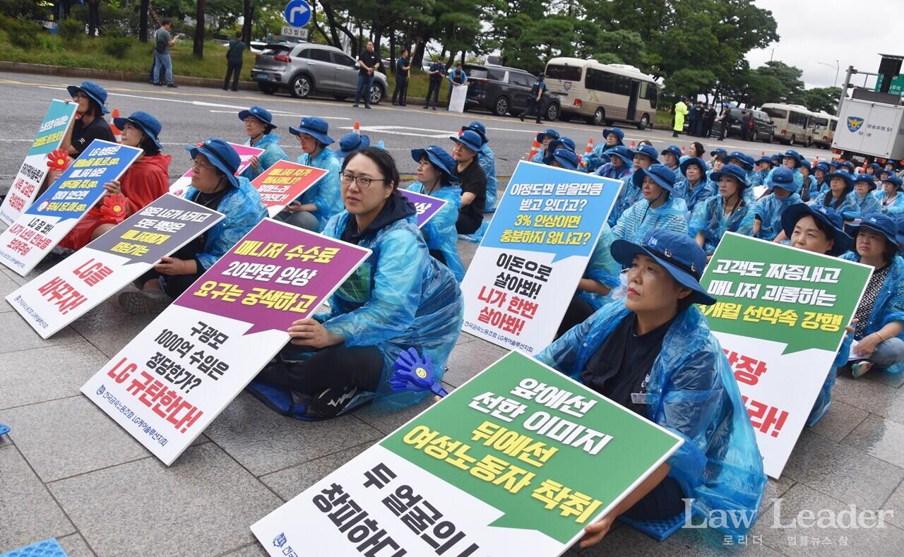 서울지부는 특히 “LG그룹은 한국노총이 교섭대표노조로 있는 LG전자와 자회사들에서는 직군에 따라 6~8.5%의 임금인상률로 교섭을 정리한 반면, 하이케어솔루션(LG전자 케어솔루션 전문회사) 매니저들에게는 절반도 못 미치는 3%대 인상률을 제시하더니, 버티기에 돌입해 교섭을 장기화시키고 있다”고 비판했다.