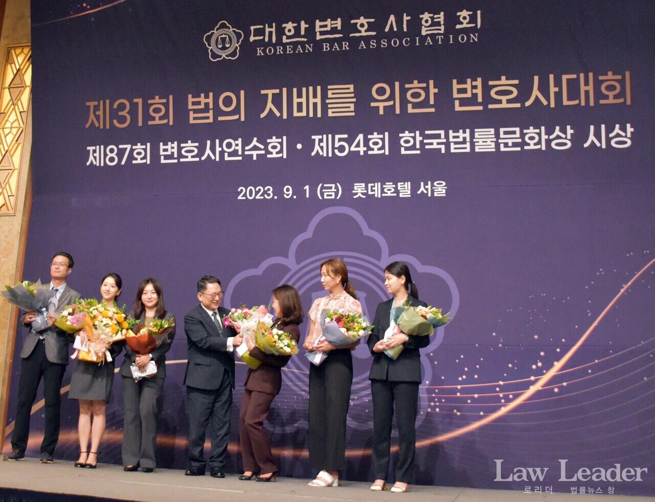 이날 김영훈 대한변호사협회장이 직접 수상자에게 상패와 상금을 수여앴다.