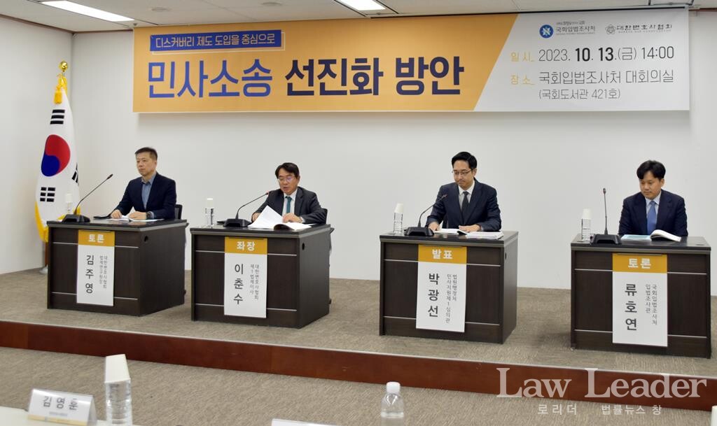 [로리더] 대한변호사협회(협회장 김영훈)와 국회입법조사처(처장 박상철)는 13일 오후 2시 국회입법조사처 대회의실에서 “민사소송 선진화 방안 – 디스커버리 제도 도입을 중심으로” 세미나를 개최했다.