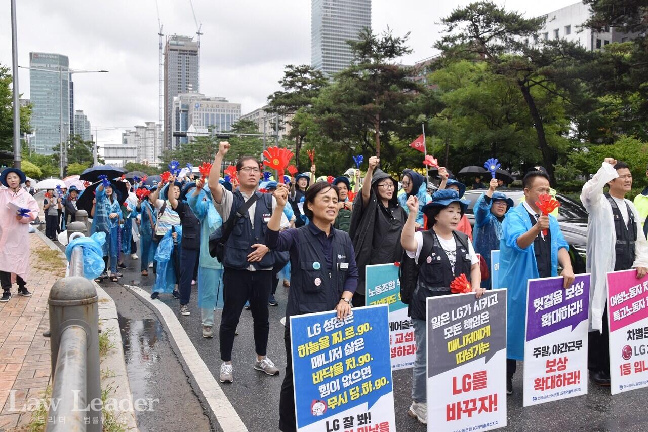 금속노조 비정규단위는 “LG전자가 요구를 수용해야 LG케어솔루션 문제를 해결할 수 있는 구조”라며 “특수고용, 간접고용, 비정규직 노동자들의 권리를 보장하라는 사회적 목소리가 커졌고, 이는 원청 사용자성을 인정하는 노조법 2ㆍ3조 개정안으로 모아졌다”고 짚었다.
