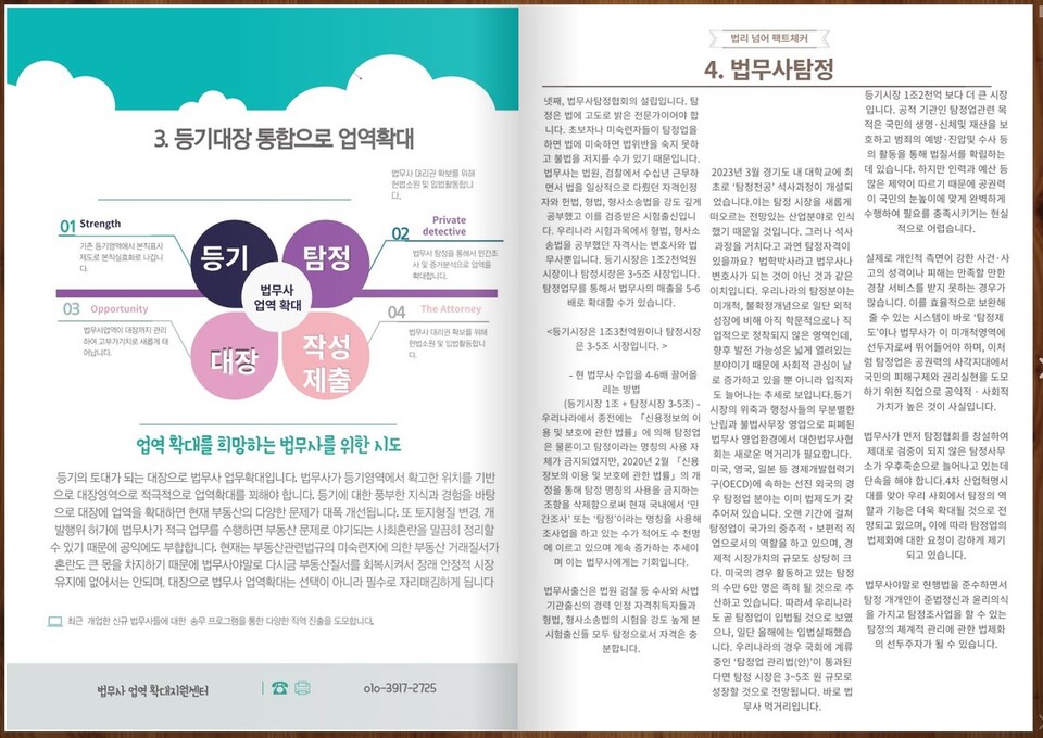 그는 “등기시장은 1조 3천억원이나, 탐정시장은 3~5조 시장”이라며 “현 법무사 수입을 4~6배 끌어올리는 방법”이라고 하면서다.