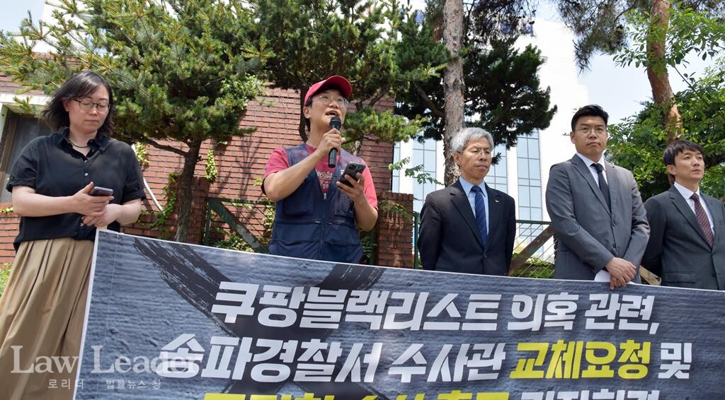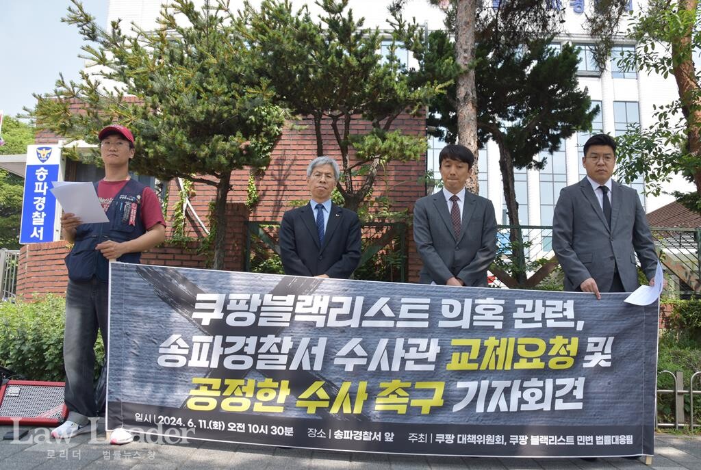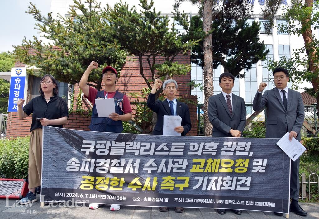 쿠팡노동자의 건강한 노동과 인권을 위한 대책위원회(쿠팡 대책위원회)와 쿠팡 블랙리스트 민변(민주사회를 위한 변호사모임) 법률대응팀은 지난 11일 서울 송파경찰서 앞에서 “쿠팡블랙리스트 의혹 관련, 송파경찰서 수사관 교체요청 및 공정한 수사 촉구 기자회견”을 개최했다.
