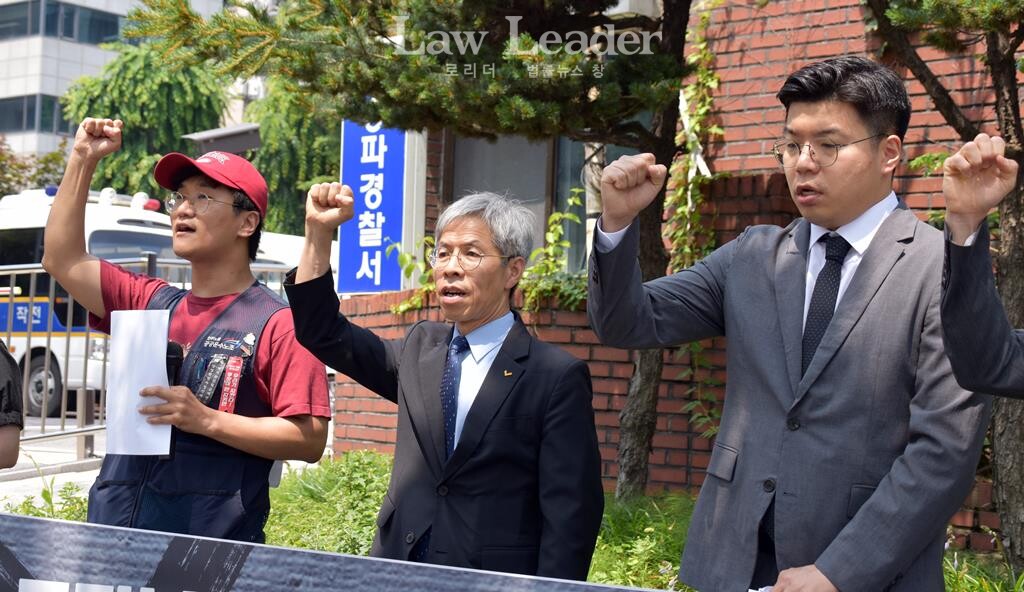 기자회견이 끝나고 참석자들은 <수사관 기피 신청서>를 송파경찰서에 제출하려고 하는데, 경찰서 관계자가 나와 묻기도 했다.