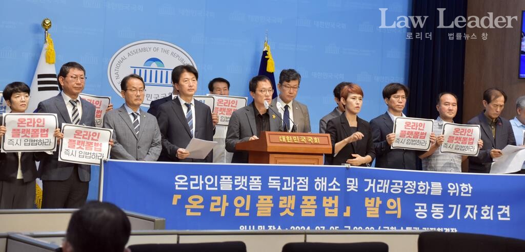 더불어민주당 을지로위원회ㆍ소상공인위원회, 박주민ㆍ유동수ㆍ강준현ㆍ민병덕ㆍ오기형ㆍ김남근ㆍ이강일 더불어민주당 국회의원, 중소기업중앙회, 소상공인연합회, 프랜차이즈산업협회, 한국소비자연맹, 한국소비자단체연합, 소비자시민모임, 소비자와함께, 진보네트워크센터, 전국민주택시노동조합, 배달앱공정화사장모임, 참여연대 민생희망본부, 민변 민생경제위원회, 한국중소상인자영업자총연합회, 전국가맹점주협의회ㆍ수리용역수탁사업자협의회, 한국자동차검사정비사업조합연합회 등 110여 개 단체는 이날 오전 9시 20분 국회 소통관에서 ‘온라인 플랫폼법’ 발의 공동 기자회견을 개최했다.