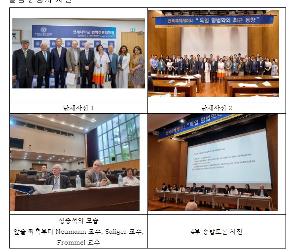 이번 세미나는 오랜 기간 활발하게 교류하면서 양국의 형법학을 발전시켜 온 한국과 독일의 형법학자들의 시각을 나누는 자리로, 세계적인 명성을 자랑하는 독일 형법학자들의 3개의 주제발표(책임론, 성범죄, 배임죄)와 각 주제의 전문가인 한국 형법학자들의 종합토론으로 이어졌다.