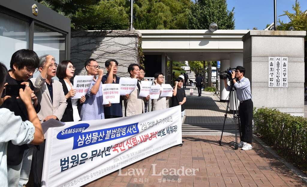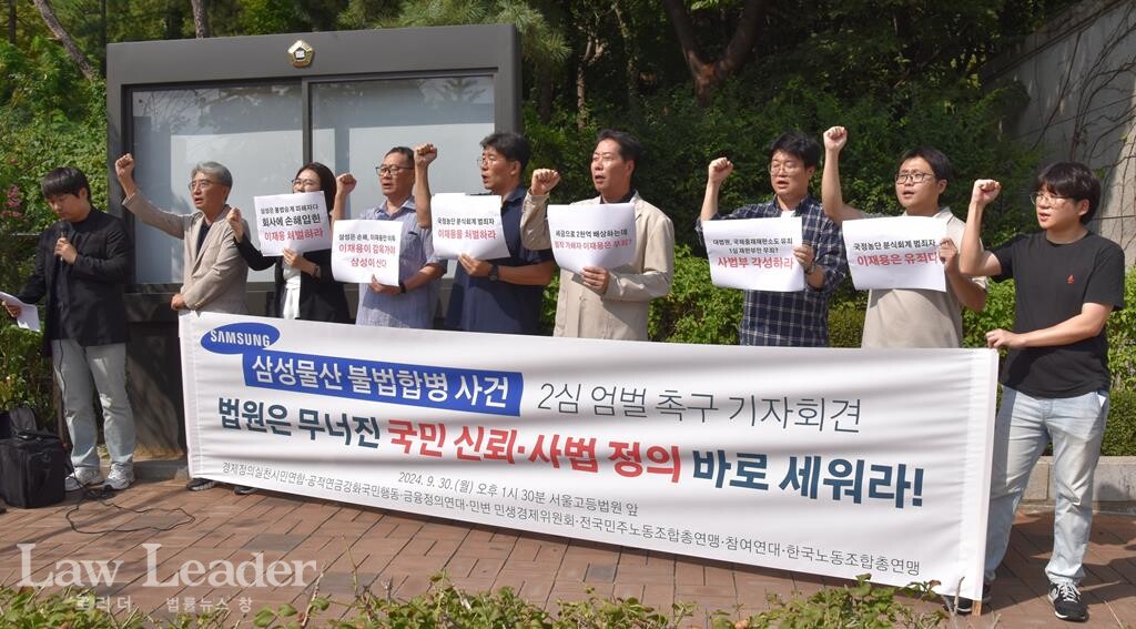 경제정의실천시민연합(경실련), 공적연금강화국민행동, 금융정의연대, 민변(민주사회를 위한 변호사모임) 민생경제위원회, 전국민주노동조합총연맹(민주노총), 참여연대, 한국노동조합총연맹(한국노총) 등은 9월 30일 오후 1시 30분 서울 서초동 서울법원종합청사 앞에서 삼성물산-제일모직 불법합병 사건 항소심(2심) 재판과 관련해 이재용 회장의 엄벌을 촉구하는 기자회견을 개최했다.