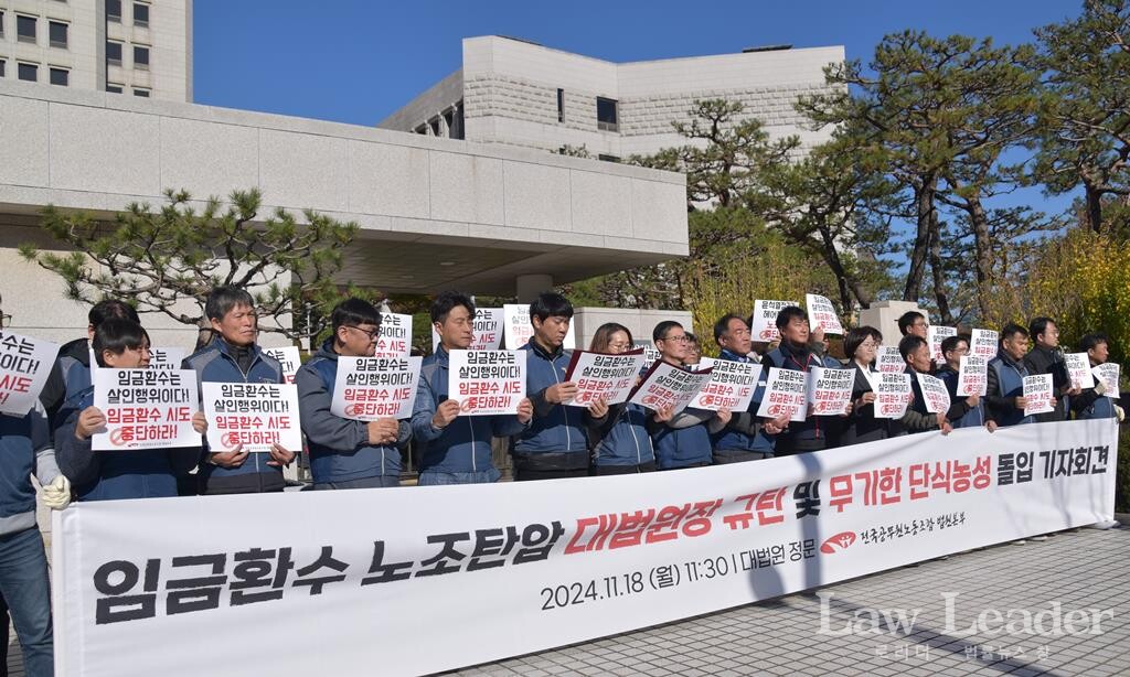 법원본부는 “그런데 대법원 윤리감사실은 일방적으로 추가 조사를 진행했고, 감사대상 기간(2020년 6월 ~ 2023년 10월)에 법원노조 간부들에게 지급한 임금을 환수하겠다는 방침을 세운 것으로 보인다”고 밝혔다.