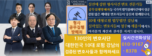 이상에서 보시는 것처럼 공무집행방해죄의 문제는 간단한 듯 하면서도 여러 쟁점을 내포하고 있는 어려운 부분입니다. 특히 청주 형사변호사, 충주 형사변호사, 세종시 형사변호사로 다양한 상담에 맞닥뜨려질 때가 있습니다. 대개 술과 연관이 되어 또는 순간의 화를 참지 못하여 공무집행방해죄가 문제되는 경우가 많이 있습니다. 적극적이고 최선을 다해 일하는 변호사가 좋은 결과를 맺을 수 있다는 점은 명확해 보입니다.