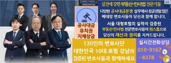 #공사대금 #공사대금소송 #공사대금미지급 #공사대금청구소송 #공사대금소멸시효 #건물하자 #지체상금 #유치권 #청주변호사 #청주부동산변호사 #청주법무법인 #법무법인강남 #김성태변호사SNS 기사보내기