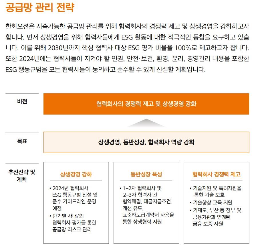 김동현 변호사는 “유럽연합은 기업 지속가능성 실사지침(CSDDD)을 통해 이를 법제화했고, 실제로 한화오션 스스로도 이러한 책임을 인지하고 있다”면서 “한화오션은 2023년 ESG보고서에서 ‘2024년에는 협력사들이 지켜야 할 인권, 안전·보건, 환경, 윤리, 경영관리 내용을 포함한 ESG 행동규범을 모든 협력사들이 동의하고 준수할 수 있게 신설할 계획입니다’라고 말했다. 이런 계획은 단순한 선언이 아니라 국제사회의 확고한 원칙으로 자리 잡은 기업의 인권 존중 책임을 구체적으로 실천하겠다는 한화오션의 약속”이라고 꼬집었다.