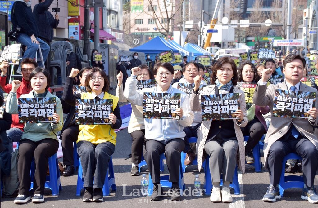 [로리더] 진보당 원내부대표 전종덕 국회의원은 “윤석열 탄핵은 윤석열과 한덕수ㆍ최상목 등 내란 세력들에 의해 무시되고 부정당한 헌정질서를 바로 세우는 것”이라며 “헌법재판관들은 헌법과 법률에 따라, 주권자 국민의 뜻을 받들어 윤석열을 만장일치로 파면해야 한다”고 목소리를 높였다.