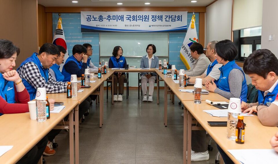 [로리더] 대한민국공무원노동조합총연맹(공노총)은 9일 회의실에서 더불어민주당 추미애 국회의원과 공무원 정치기본권 보장을 포함한 주요 의제에 대한 정책 간담회를 진행했다.