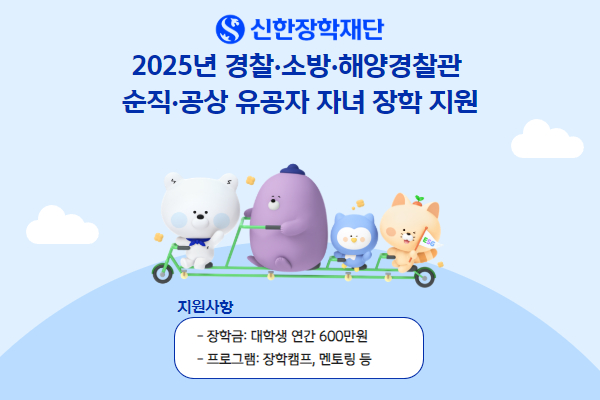 신한장학재단은 해마다 경찰관, 소방관, 해양경찰관 순직ㆍ공상 유공자의 뜻을 기리기 위해 이들의 자녀들이 안정적으로 학업을 지속하도록 지원하고 있다.
