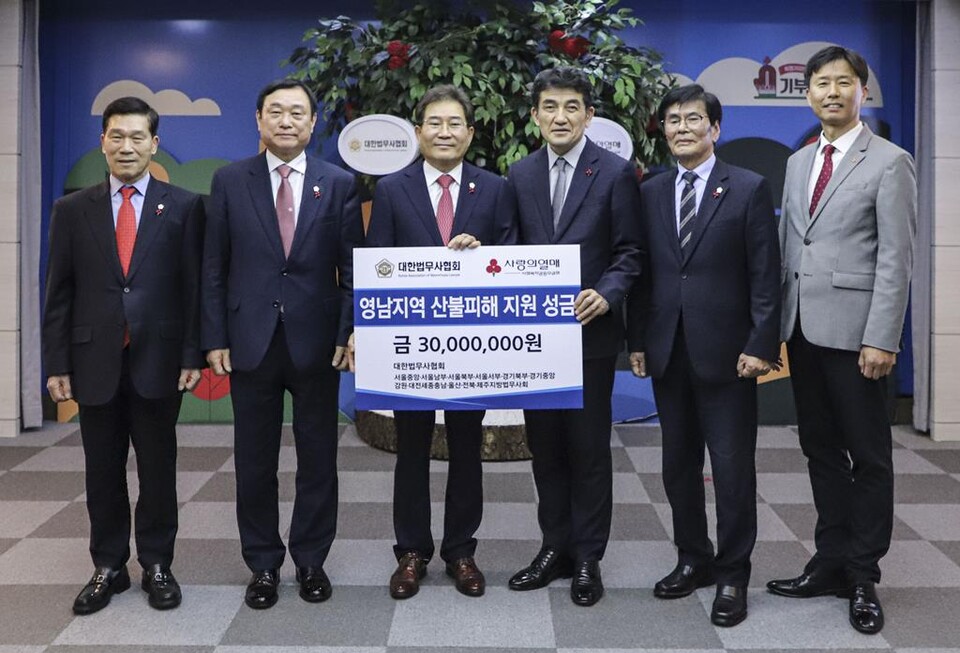 [로리더] 대한법무사협회(협회장 이강천)는 4월 18일 서울 중구에 위치한 사회복지공동모금회 중앙회를 방문해 최근 경남 산청과 경북 의성 등에서 발생한 산불로 피해를 입은 이재민들을 돕기 위한 성금 3000만원을 전달했다.