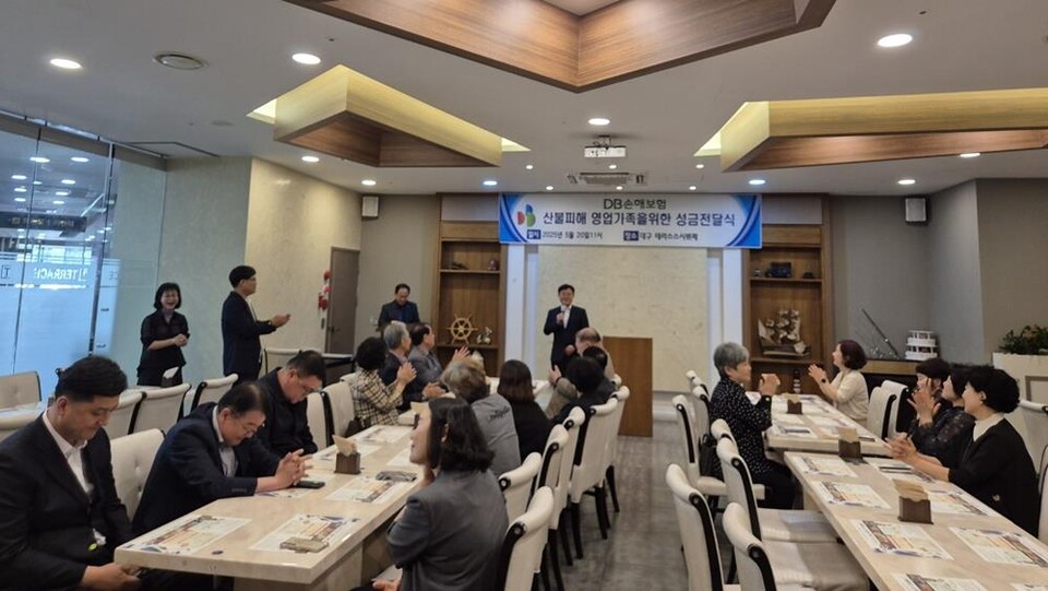 DB손해보험 영업가족협의회는 이날 오전 11시 대구 테라스스시뷔페에서 ‘산불피해 돕기 모금액 2310만원’의 성금 전달식을 가졌다.