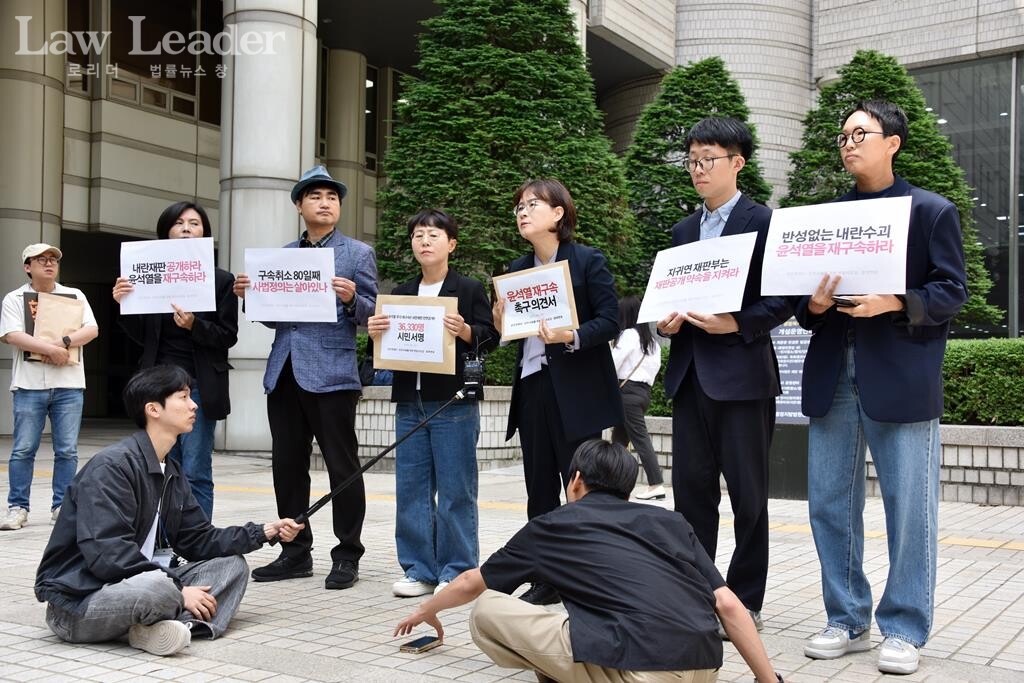 참여연대, 민변, 군인권센터는 이날 재판부에 제출한 의견서에서 “내란 우두머리 혐의라는 헌정사상 가장 중대한 범죄혐의가 있는 피고인의 구속을 취소한 뒤, 증거인멸의 염려가 있음에도 이를 방치하는 것은 국민으로부터 실체적 진실 발견과 형사 사법정의의 실현이라는 중대한 사명을 부여받은 사법부의 의무를 방기하는 것임을 지적한다”며 “피고인 윤석열의 불구속 상태를 유지하는 것이 정의에 현저히 반하는 불처벌임을 환기하며, 재판부에 피고인 윤석열에 대한 구속을 강력히 추구한다”고 밝혔다.