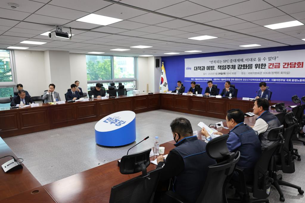 더불어민주당 진짜 대한민국 선거대책위원회 노동본부(본부장 김주영ㆍ최철호ㆍ김영훈)와 더불어민주당 국회 환경노동위원회(위원장 안호영)가 국회의원회관에서 ‘반복되는 SPC 중대재해, 이대로 둘 수 없다 - 대책과 예방, 책임주체 강화를 위한 긴급 간담회’를 개최했다.