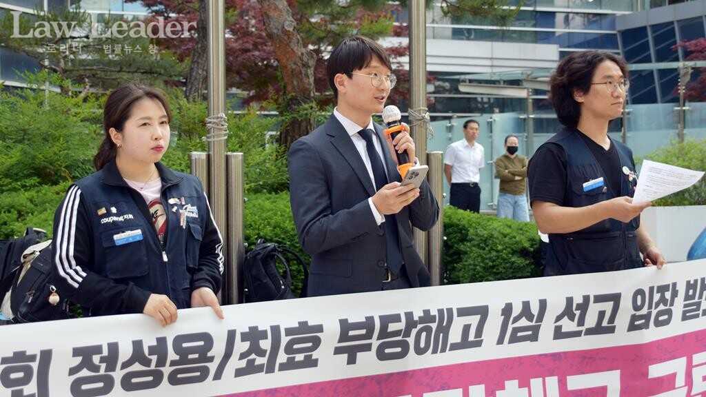 김상연 변호사는 “공공법률원(공공운수노조 법률원)은 정성용, 최효 동지를 비롯한 쿠팡물류센터 노동조합 활동가들이 복직할 수 있도록, 그리고 쿠팡을 비롯한 물류센터 노동자들의 노동조합할 권리가 제대로 지켜지도록 끝까지 함께 싸우겠다”고 목소리를 높였다.