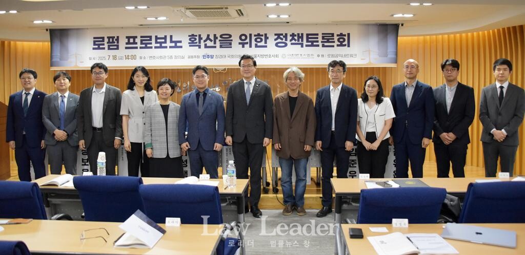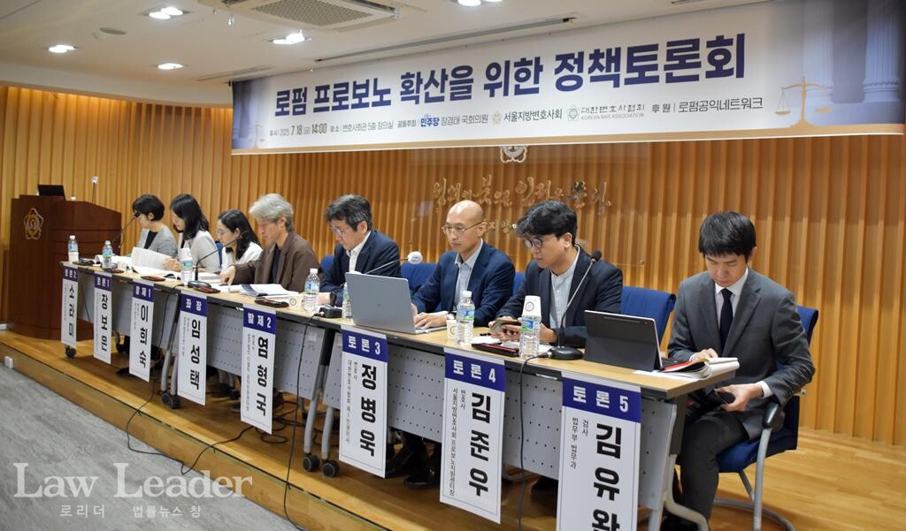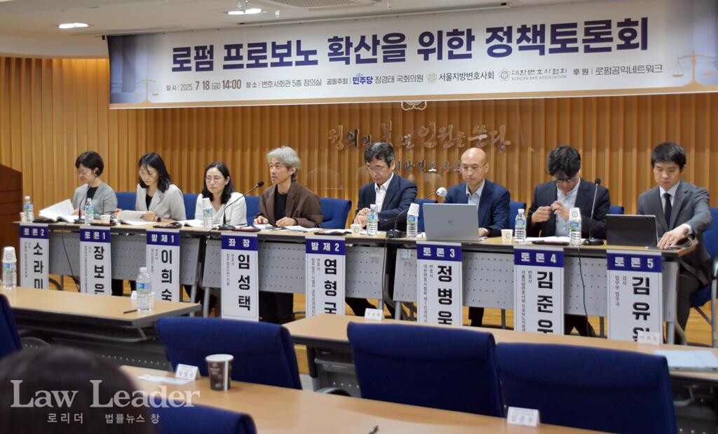 대한변호사협회(협회장 김정욱), 서울지방변호사회(회장 조순열), 장경태 더불어민주당 국회의원7월 18일 오후 2시 서울 서초동 변호사회관 정의실에서 ‘로펌 프로보노 확산을 위한 정책토론회’를 개최했다. 이번 토론회는 로펌공익네트워크가 후원했다.