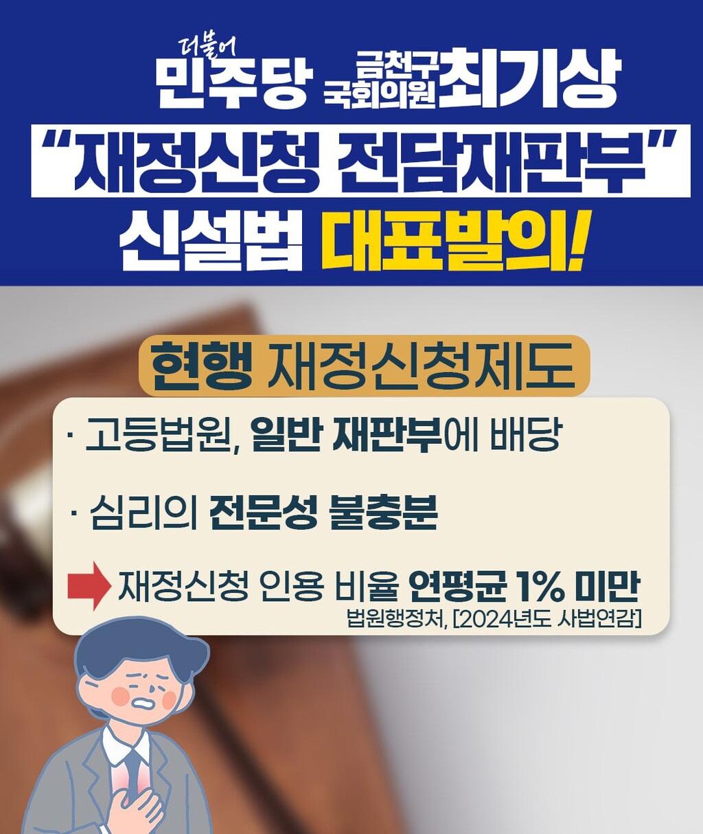 판사 출신 최기상 더불어민주당 국회의원은 지난 7월 25일 이 같은 내용을 담은 법원조직법 개정안을 대표 발의했다.