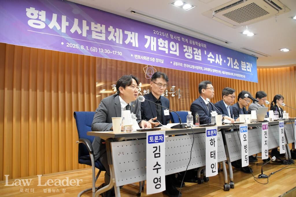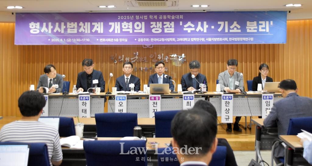 [로리더] 한국비교형사법학회, 고려대학교 법학연구원, 서울지방변호사회, 한국법령정책연구원은 8월 1일 서울 서초동 변호사회관 5층 정의실에서 ‘형사사법체계 개혁의 정점 – 수사ㆍ기소 분리’ 주제로 2025년 형사법학회 공동학술대회를 개최했다.