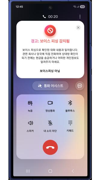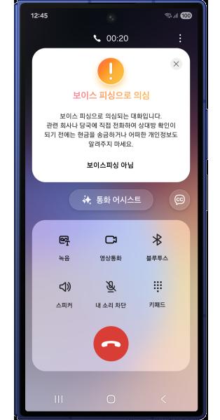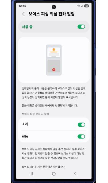 갤럭시 스마트폰은 통화 내용을 토대로 보이스피싱이 의심되면 ‘의심’, ‘경고’ 알림을 통화 중에 사용자에게 보낸다.