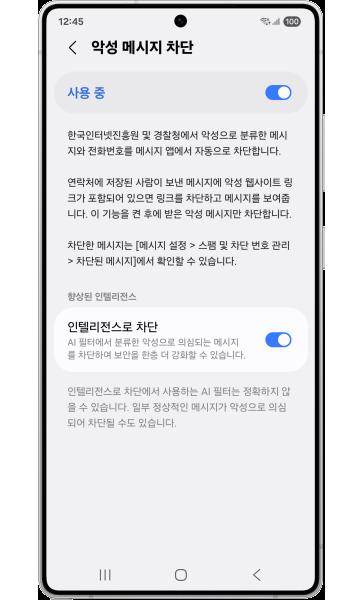 또, 삼성전자는 ‘악성 메시지 차단’ 기능에 더해 AI가 딥러닝 기반으로 스팸을 필터링해 차단해 주는 ‘인텔리전스로 차단’ 기능도 새롭게 올해 3월부터 갤럭시 S25 시리즈에 처음 적용했다.