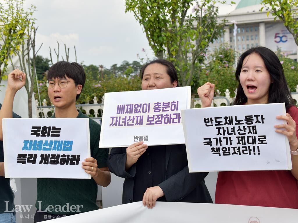 한편, 이날 기자회견에는 이종란ㆍ정향숙ㆍ임다윤 반올림 상임활동가, 조승규 노무사, 천지선 변호사(공익인권법재단 공감), 삼성디스플레이 자녀 산재 피해자 정 씨, 임혜인ㆍ이슬아 노무사(삼성전자 반도체 자녀 산재 피해자 발언문 대독), 고광민 변호사(서울대 공익법률센터), 진은선 장애여성공감 활동가 등이 참석했다.
