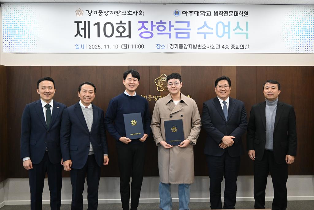 [로리더] 경기중앙지방변호사회(회장 이재진)는 10일 경기중앙지방변호사회관 4층 중회의실에서 이재진 경기중앙지방변호사회 회장, 소병천 아주대학교 법학전문대학원장 등 관계자가 참석한 가운데 “제10회 장학금 수여식”을 개최했다.