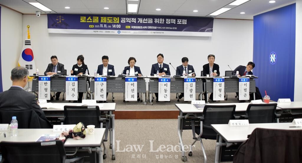서울지방변호사회(회장 조순열)는 더불어민주당 박균택ㆍ진선미 국회의원, 법학전문대학원협의회, 국회입법조사처와 함께 11일 오후 2시부터 국회도서관에서 ‘로스쿨 제도의 공익적 개선을 위한 정책포럼’을 개최했다.