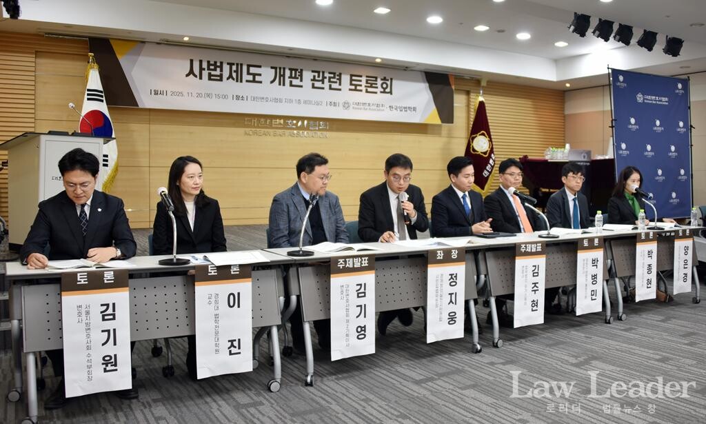 토론자는 ▲박병민 부장판사(창원지방법원 통영지원) ▲이진 경희대 법학전문대학원 교수 ▲박종현 한양대 법학전문대학원 교수 ▲김기원 변호사(법무법인 서린, 서울지방변호사회 수석부회장) ▲양은경 조선일보 법조전문기자가 참여했다.