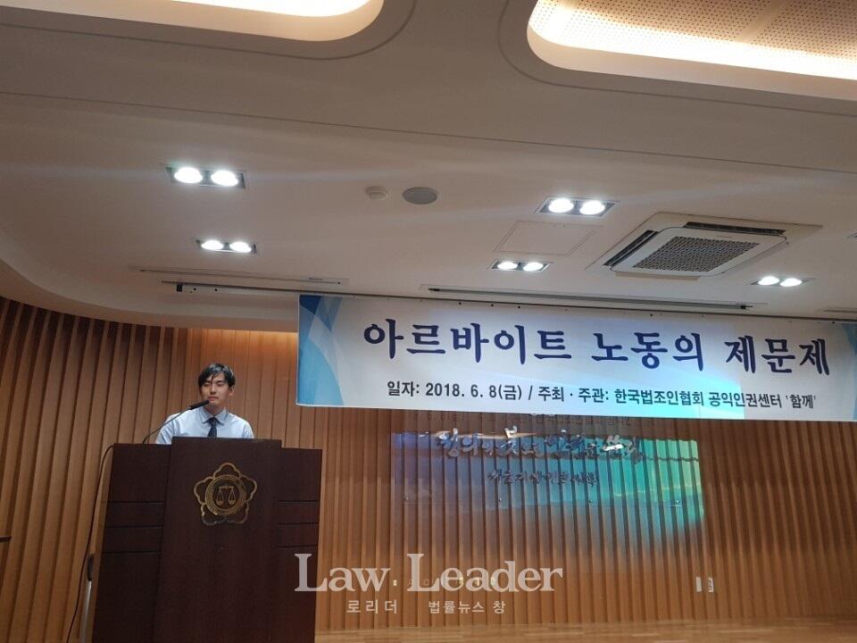 청년변호사 단체 한국법조인협회(회장 김정욱) 공익인권센터(센터장 전정환) ‘함께’는 지난 8일 서울 서초동 서울지방변호사회 변호사회관에서 ‘아르바이트 노동의 제문제’ 교육 연수행사를 개최했다.